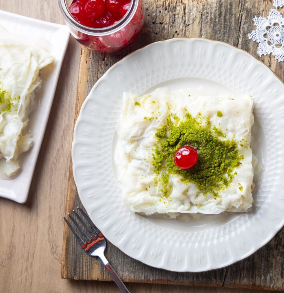 Mısır nişastasından üretilen ince yapraklar katkı içermez. Doğal süt, şeker ve gül suyu ile birleştiğinde hem hafif hem de sağlıklı bir tatlı ortaya çıkar.